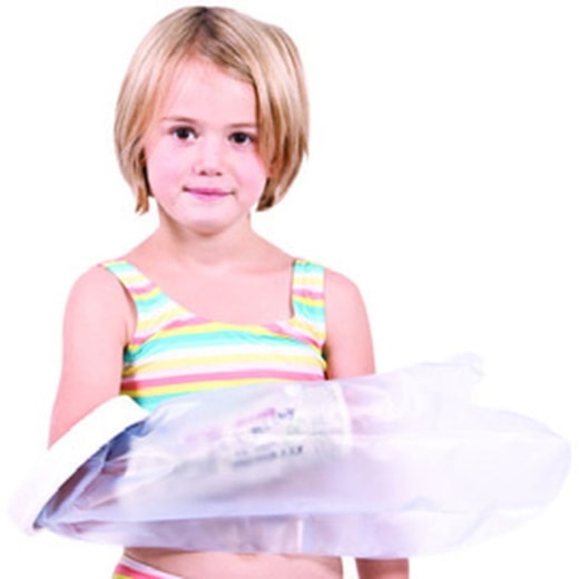 Protetor de braço impermeável para o proteger no duche diário. Tem um anel de silicone que se ajusta e impede a entrada de água no seu interior.